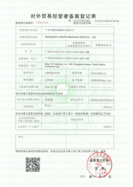 La CINA Guangzhou Menzeh Machinery Parts Co., Ltd. Certificazioni